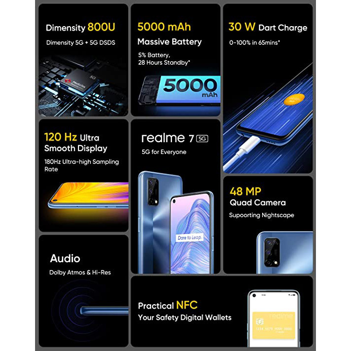 برند ریلمی یکی از برندهای زیرمجموعهی کمپانی اوپو (oppo) است که با وجود نوظهور بودن آن، امروزه به عنوان یکی از برندهای محبوب تولید موبایل و گجتهای هوشمند و ابزار دیجیتال محسوب میشود که میتوان تولیدات آن را با محصولات شیائومی و دیگر برندهای میانرده مقایسه کرد. گوشی موبایل ریلمی مدل RMX2111 7 5G با قابلیت قرار دادن دو سیم کارت و ظرفیت 128 گیگابایتی همراه با رم 6 گیگابایت دارای طراحی زیبایی است که در نوامبر 2020 به بازار عرضه شده و نسبت به کارایی قیمت مناسب و ارزش خرید بالایی دارد. تراشه MediaTek MT6853 Dimensity 800U 5G (7 nm) به همراه پردازنده گرافیکی Mali-G57 MC3 سرعت و کیفیت بالایی را برای این موبایل به ارمغان آورده است. صفحهنمایشی با پنل IPS و تراکم پیکسلی 405 پیکسل بر هر اینچ در این مدل از تولیدات ریل می به چشم میخورد. این محصول بنا به ادعای شرکت سازنده دارای قابلیت شارژ سریع با توان 30 وات و باتری لیتیوم پلیمری با ظرفیت 5000 میلیآمپر ساعت است که این قابلیت شارژ سریع در کنار ظرفیت بالای باتری شما را از شارژ مداوم و طولانی مدت موبایلتان بینیاز خواهد کرد. گوشی موبایل ریلمی مدل RMX2111 7 5G دو سیم کارت ظرفیت 128 گیگابایت و رم 6 گیگابایت میتواند یک انتخاب هوشمندانه برای شما باشد تا از گوشی موبایل خود و کارهایی که از آن برمیآید لذت ببرید.