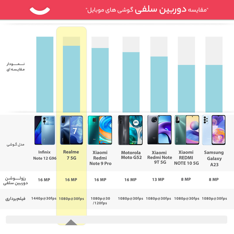 | مشخصات دوربین سلفی | حسگری از نوع عریض (Wide) با رزولوشن 16 مگاپیکسل، دریچهی دیافراگم f/2.1، فاصله کانونی لنز 26 میلیمتر (Focal Length 26 mm)، سایز سنسور 1/3.06 اینچ، ثبت تصاویر با پیکسلهایی به سایز 1.0 میکرومتر (1.0µm Pixel Size) قابلیت عکاسی HDR فیلمبرداری: رزولوشن 1080 × 1920 و سرعت 30 فریم بر ثانیه (1080p@30FPS) |