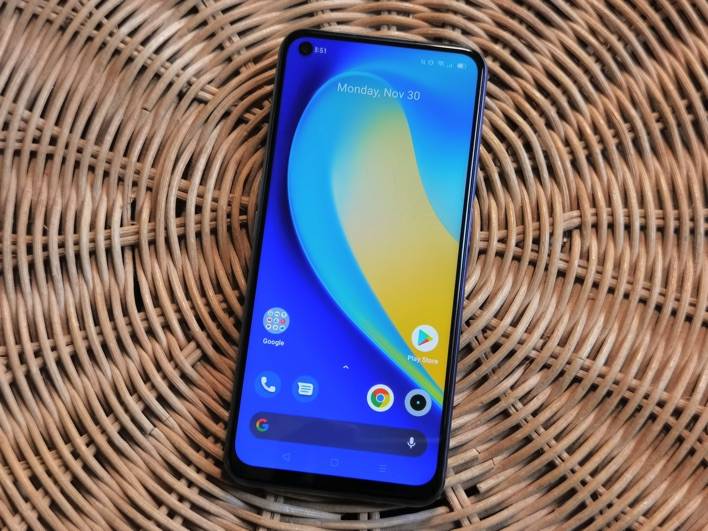 برند ریلمی شاید بهنسبت برندهای مطرح دیگر در کشور چندان در بین کاربران شناخته شده نباشد، اما بدون هیچ تعریف اضافی باید بگوییم که گوشیهای هوشمند این برند، توانستهاند تا به امروز با بهره بردن از مشخصات فنی مناسب، عملکرد بسیار خوبی را بهنمایش بگذارند. یکی از گوشیهای میانرده و باکیفیت این شرکت، مدل Realme 7 5G است. در نمای روبهرویی صفحهنمایش یکدست و جذابی را شاهد هستید که به طراحی زیبای ناچ اینفینیتی O مجهز شده است. بریدگی دایرهای شکل ناچ در قسمت بالایی و گوشه سمت چپ صفحهنمایش، سنسور دوربین سلفی را در خود جای داده است. به نسبت حاشیههای کمی برای صفحهنمایش در نظر گرفته شده است و ۸۳.۷ درصد از نمای روبهرویی را صفحهنمایش به خودش اختصاص داده است.