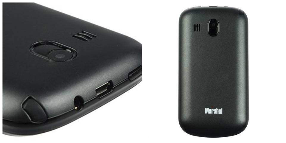 ME-363 از پلاستیک ساخته شده و ابعاد آن با توجه به صفحهنمایش 3.5اینچی، قابل قبول است؛ البته مقاومت بدنهی تمامپلاستیکی این گوشی در برابر خط وخش چنگی به دل نمیزند و اثر انگشت بهراحتی روی صفحهنمایش و قاب پشت به جا میماند. وزن 100گرمی گوشی هم با توجه به پلاستیکیبودن آن مناسب به نظر میرسد. برخلاف بسیاری از محصولات موجود در بازار، مارشال در طراحی این گوشی موبایل پورت microUSB را در لبهی بالایی گوشی تعبیه کرده است. در کنار این پورت، جک 3.5میلیمتری هدفون و هندزفری قرار دارد که میتوان از آن برای اتصال هندزفری (قرارگرفته درون جعبهی گوشی) استفاده کرد؛ همچنین کلید پاور هم در کنار این دو پورت و روی لبه بالایی قرار دارد تا این لبه بسیار شلوغ شده و کارایی آن افزایش پیدا کند. بد نیست بدانید لبههای سمت چپ و پایینی گوشی، خالی از هرگونه شیار، کلید یا پورت هستند.