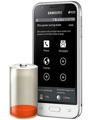 موردی که در J1مینی، جلبتوجه میکند؛ باتری 1500 میلیآمپر ساعتیاش است که میتواند انرژی لازم برای هشت ساعت مکالمهی بیوقفه را تامین کند. البته مثل سایر گوشیهای سامسونگ، حالت «صرفهجویی فوقالعاده در مصرف باتری» (Ultra Power Saving Mode) برای این گوشی هم در نظر گرفتهشده است. با فعال کردن این حالت تمام سرویسهای گوشی بهغیراز تماس و پیامک را غیرفعال میشوند؛ همچنین برای مصرف کمتر از باتری، نمایشگر گوشی محتویاتاش را بهصورت سیاهوسفید نمایش میدهد.