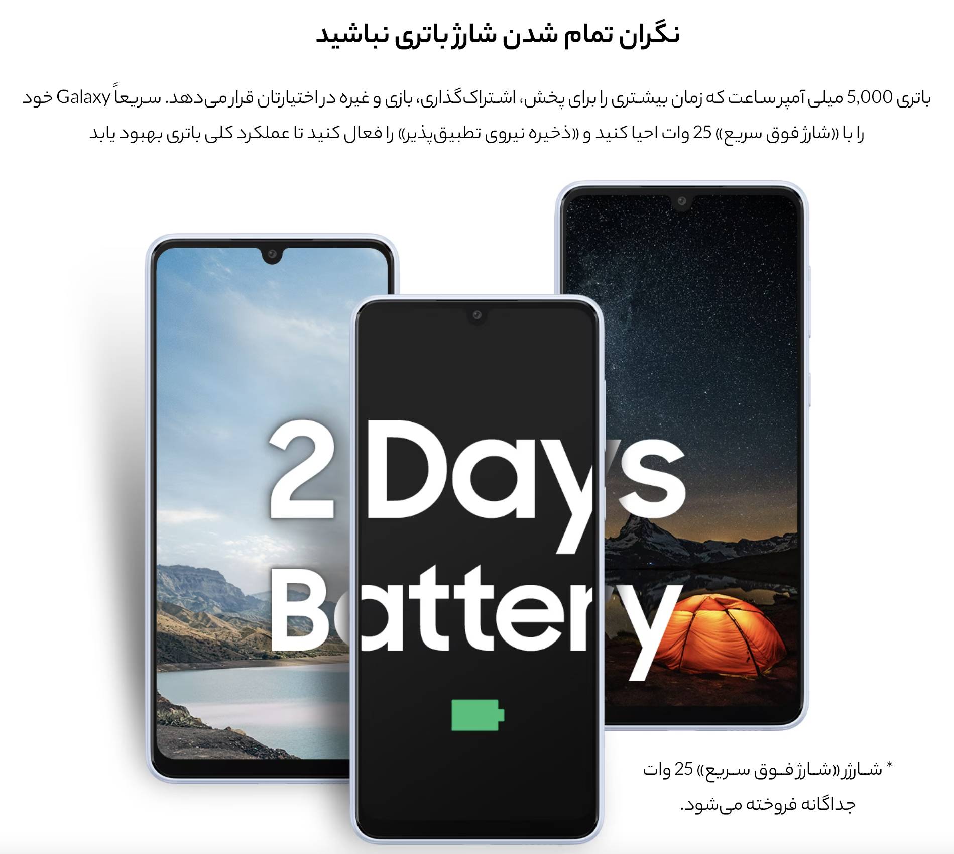 | مشخصات باتری | باتری لیتیومپلیمر با ظرفیت 5000 میلیآمپرساعتقابلیت شارژ سریع با توان 25 واتفاقد آداپتور شارژر |
