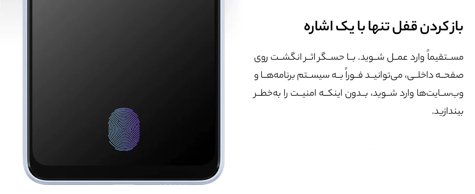 در قسمت پشتی هم باز هم طراحی آشنایی را شاهد هستیم که چهار سنسور دوربین در معماری مستطیلی شکل کنار یکدیگر قرار گرفتهاند. در قسمت پشتی همانطور که در تصاویر مشاهده میکنید، خبری از حضور حسگر اثر انگشت نیست و جالب است که این قابلیت امنیتی همانند گوشیهای هوشمند رده بالا، زیر صفحهنمایش این گوشی هوشمند میانرده قرار گرفته است. حسگر اپتیکالی که توانایی ارائه عملکرد قابل قبولی در قفلگشایی صفحهنمایش دارد. متریال پلاستیکی مناسب و تکنولوژی ساخت پیشرفته هم سبب شده تا این گوشی میانرده با توجه به پشتیبانی از استاندارد IP67 توانایی قرارگیری در عمق ۱ متری آب و مدت زمان ۳۰ دقیقهای را دارد که برای یک گوشی میانرده قابلیت بسیار جذابی است.