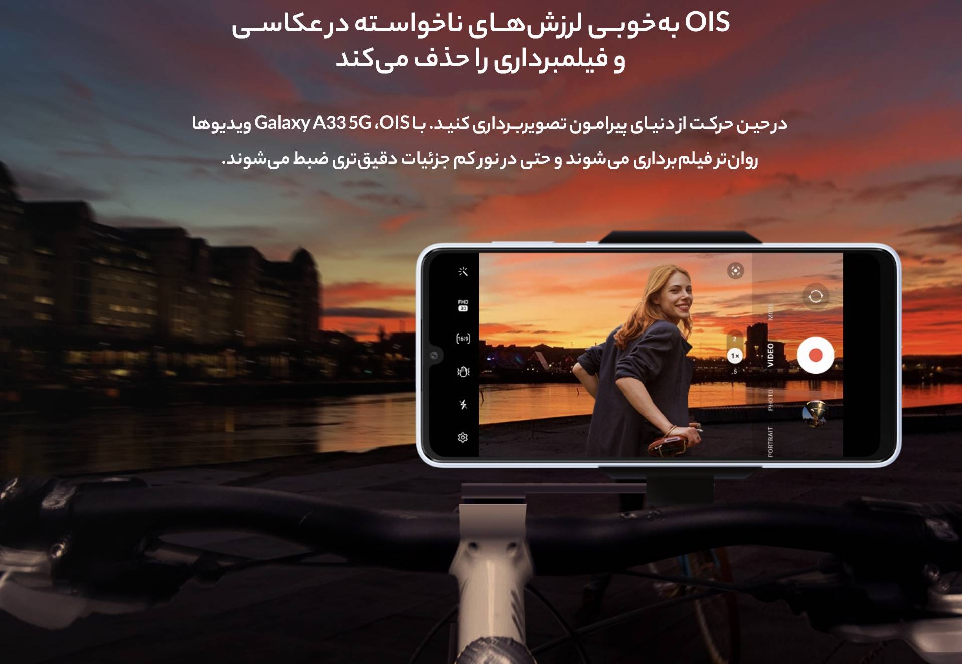 اما میرسیم به سنسورهای دوربین در نظر گرفته شده برای این گوشی هوشمند که یکی از اصلیترین معیار خرید کاربران در انتخاب یک گوشی میانرده با کیفیت است. سنسور دوربین اصلی با رزولوشن ۴۸ مگاپیکسل انتخاب بسیار خوبی بود که سامسونگ برای این گوشی در نظر گرفت. میزان رزولوشن در نظر گرفته شده سبب شده تا در نور تصاویر باکیفیتی را با سامسونگ Galaxy A33 5G به ثبت برسانید. تصاویری که کنتراست خوب، داینامیک رنج جذاب و طبیعی و البته جزئیات دقیقی را در تصاویر خروجی ثبت شده به نمایش میگذارد. در نور شب هم میتوانید روی این گوشی حساب باز کنید. زیرا با توجه به گشودگی دریچه دیافراگم f/1.8 جذب نور بسیار خوبی در نور کم دارد و از طرفی قابلیت نرمافزاری عکاسی حالت شب یا همان night mode هم نویزهای موجود در نور شب (نورهای مصنوعی) را تا میزان قابل قبولی حذف میکند و در نهایت خروجی تصاویر باکیفیتی در نور شب را شاهد خواهید بود. قابلیت جذاب لرزشگیر OIS یا همان ارزشگیر اپتیکال هم برای حذف لرزشهای ناخواسته هنگام ضبط ویدیو و عکاسی، سنسور دوربین اصلی را همراهی میکند.