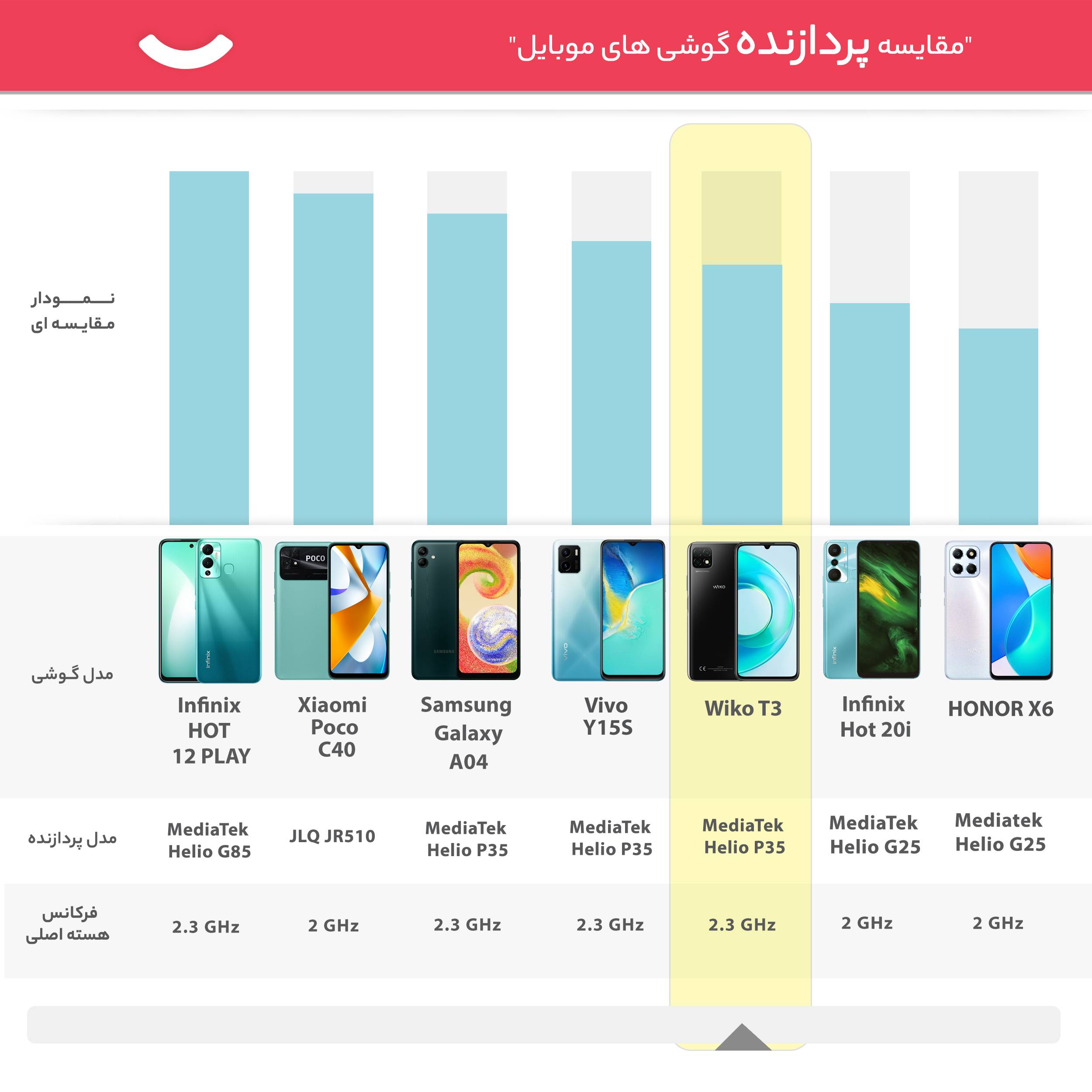 در بخش مشخصات سختافزاری اما ویکو T3 عملکردی فراتر از یک گوشی اقتصادی داشته است. پردازنده هلیو P35 شرکت مدیاتک این گوشی را همراهی میکند. چهار هسته قدرتمند با توانایی ارائه حداکثر فرکانس کاری ۲.۳ گیگاهرتز در کنار چهار هسته اقتصاد با صرفه انرژی کمتر و توانایی ارائه فرکانس کاری ۱.۸ گیگاهرتز، هشت هسته این پردازنده ۱۲ نانومتری را تشکیل میدهند.
