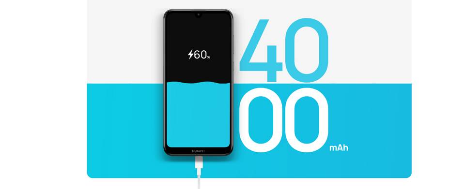 در کنار تمامی این امکانات، شرکت سازنده روی این مدل از یک باتری 4۰۰۰ میلیآمپرساعتی استفاده کرده است. به نظر میرسد باتری این دستگاه با توجه به سختافزارش عمری فوقالعاده دارد. با توجه به اینکه استفاده از باتری 3000 میلیآمپرساعتی به گزینهای معمول در میانردهها تبدیل شده است، این باتری بزرگ و قدرتمند یکی از گزینههای نقاط قوت Y7 Prime 2019 بهحساب میآید. البته این گوشی مجهز به فناوری شارژ سریع نیست که زمان شارژ شدن را طولانیتر کرده است. البته هوآوی از ورودی شارژ 2 آمپری (10 وات) برای این محصول استفاده کرده است تا سرعت شارژ شدن گوشی را بهبود ببخشد.