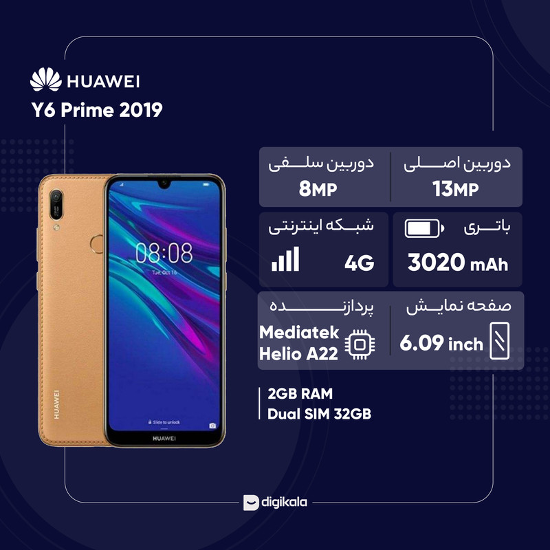 گوشی موبایل هوآوی مدل Y6 Prime 2019 MRD-LX1F دو سیم کارت ظرفیت 32 گیگابایت