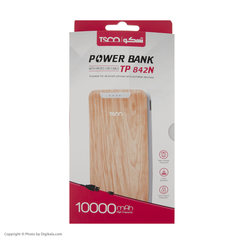 گوشی مدل «Y9 2019» از سری محصولات شرکت مطرح هوآوی است که با پنل IPS LCD ساختهشده و فاصله لبه صفحهنمایش در آن بسیار کم است. نمایشگر این محصول دارای رزولوشن بالایی در مقایسه با گوشیهای معمول ساخت هواوی دارد؛ بهطوریکه در اندازهی 6.5 اینچیاش، حدود 396 پیکسل را در هر اینچ جا داده است. در گوشی نوا Y9 2019 هوآوی نمایشگر تقریباً تمام قاب جلویی گوشی را پر کرده است. این مشخصه در کنار لبههای براق و بدنه از جنس شیشه که بارنگهای بسیار زیبا مانند شفق قطبی، جلوهای لوکس به هوآوی Y9 2019 بخشیده است. این بدنهی زیبا در مقابل خطوخش مقاومت مطلوبی دارد. ویژگی دیگر Y9 2019 مجهز شدن به حسگر اثرانگشت است. این فناوری خطوط انگشت شما را با استفاده از فناوری جدید شناسایی میکند و تنها با لمس انگشت شما قفل گوشی را باز میکند. حسگر اثرانگشت در این گوشی، در قاب پشتی جای گرفته است. علاوه بر این حسگر، دو دوربین که در یکی سنسور 13 مگاپیکسلی و در دیگری 2 مگاپیکسل قرار دارد در قسمت پشتی این گوشی جای گرفتهاند. دوربینهای سلفی Y9 2019 هم به سنسور 16 و 2 مگاپیکسلی مجهز شده است. دوریبنهای دو مگاپیکسلی این گوشی کاربرد حسگر عمق دارند. قابلیت اتصال به شبکه ارتباطی 4G با سرعت کاملاً مطلوب، بلوتوث نسخهی 5.0، نسخهی 8.1 از اندروید و حذف کلید خانه که به نظر هوآوی هم دیگر نیازی به آن نیست، از دیگر ویژگیهای جدید این گوشی هستند. ازنظر سختافزاری هم این گوشی از تراشهی Hisilicon Kirin 710 بهره میبرد که در آن پردازندهای هشتهستهای و قدرتمند قرارگرفته تا بتواند علاوهبر کارهای معمول، از قابلیتهای بهروز که هوآوی این روزها روی آن تمرکز خاصی دارد، پشتیبانی کند. گوشی Y9 2019 محصولی بسیار زیبا و با امکانات فراوان است که به عنوان گوشی مدرن و باتری پرقدرت 4000 میلیآمپرساعتی به بازار عرضه شده است. 888 شارژر همراه تسکو مدل TP 842N ظرفیت 10000 میلی آمپر ساعت یک پاوربانک بسیار قدرتمند با مشخصات فنی کامل و طراحی بسیار زیبا با طرح چوب است. در نگاه اول بدنه چوبی بهنظر میرسد ولی بدنه پلاستیکی بوده و طرح چوب است. در بالای پاوربانک یک قسمت سیاه رنگ وجود دارد که چهار LED برای نشاندادن میزان شارژ در آن کار گذاشتهشده است. شارژر همراه تسکو مدل TP 842N ظرفیت 10000 میلی آمپر ساعت دارد.