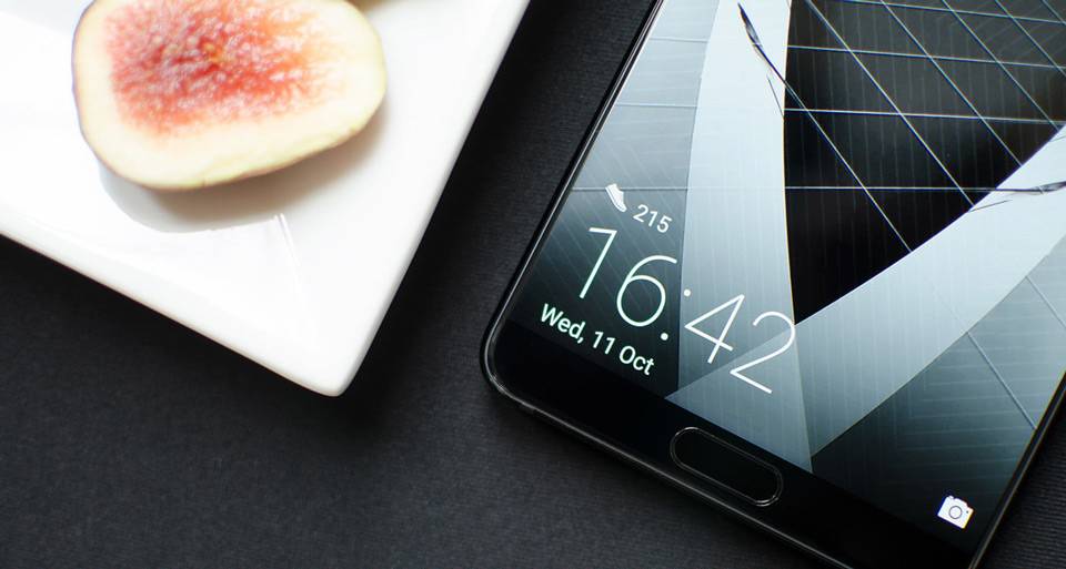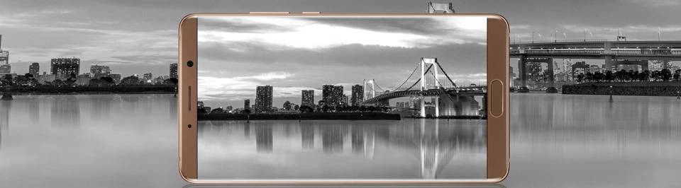 اگر بخواهیم صادق باشیم، باید بگوییم این گوشی واقعا زیبا و البته واقعا بزرگ است. این فبلت از ترکیب شیشه و فلز ساخته شده است. فریم از جنس آلومینیوم است و قاب پشتی و صفحهنمایش تماما روکشی از شیشه دارند. استفاده از شیشه با اینکه زیبایی بیبدیلی به دستگاه میبخشد، باعث شده است گوشی کمی لیز باشد و باید هنگام حمل آن کمی بیشتر احتیاط شود. جلوی گوشی یک صفحهنمایش بزرگ ۵.۹ اینچی را با حاشیهی بسیار باریک میبینیم که در نوع خود بینظیر است و با روشنشدن صفحهنمایش، زیبایی و وقار دستگاه بیش از پیش نمایان میشود. در بالای این صفحهنمایش، دوربین سلفی، بلندگو و سنسور قرار دارد. پایین صفحهنمایش یک دکمهی فیزیکی دیده میشود که در درجهی اول حسگر اثرانگشت و بعد دکمهی خانه (Home) است. این دکمه مکانیکی نیست و تنها لازم است آن را بهآرامی لمس کنید تا واکنش نشان بدهد.