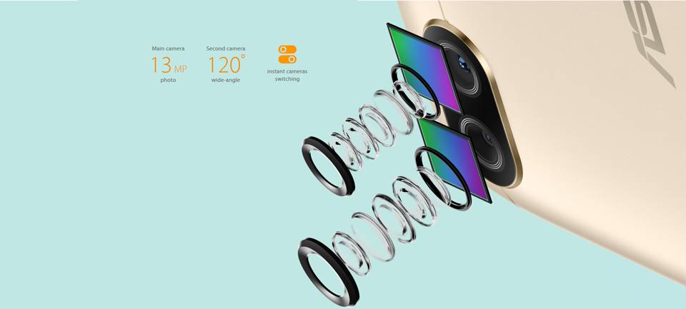 مثل خیلی از گوشیهایی که این روزها در بازار فروخته میشوند، ذنفون ۴ مکس هم دو دوربین روی قاب پشتی دارد. یکی از دوربینها از سنسور ۱۳مگاپیکسلی بهره میبرد که برای عکاسی عادی مورد استفاده قرار میگیرد و دوربین دیگر هم برای ثبت عکسهایی با زاویهی عریض ۱۲۰درجه استفاده میشود که معمولا میتوان از آن برای عکاسی از مناظر (Landscape) استفاده کرد. این ترکیب همان چیزی است که دو سال قبل روی گوشی G5 الجی شاهدش بودیم.