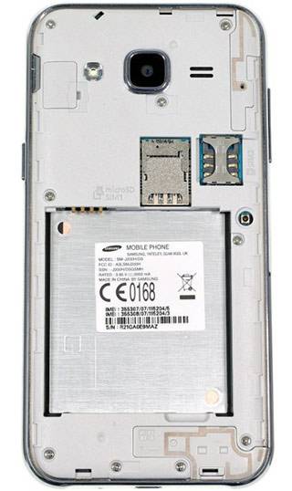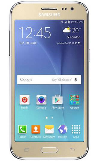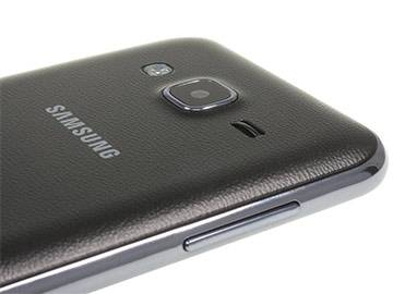 Galaxy J2 در قسمت جلویی، نمایی معمولی دارد و با تکتک اجزایش، سامسونگی بودن را فریاد میزند؛ نوع کلید فیزیکی خانه (Home) و کلیدهای لمسی، محل قرارگیری اسپیکر و لوگویی که زیر آن نقش بسته در کنار دوربین سلفی و سنسورها همگی مطابق با سایر موبایلهای سامسونگ هستند. برای کلیدهای لمسی، هیچ نور پسزمینهای در نظر گرفته نشده و برای استفاده از گوشی در شب، برای تشخیص مکان کلیدها باید به حافظهی خود تکیه کنید! در قسمت پشت گوشی، از بافت چرم مصنوعی استفاده شده که آن قدرها به دل نمینشیند و کاملا حس یک گوشی ارزان را به مصرفکننده القا میکند. البته در نگاه کسانی که در قید و بند طراحی نیستند و به هر چیز کوچکی گیر نمیدهند، مشکلی به چشم نخواهد آمد. در فریمی که دورتادور بدنه را فراگرفته، از کروم استفاده شدهاست که حسی شبیه به حس لمس فلز را به همراه دارد و جنس باکیفیتی دارد. تراشهای نرم و گردیِ این فریم باعث شده در دست گرفتن گوشی حس کلی خوبی داشتهباشد. سه اِلمان اصلی که در قسمت پشتی گوشی قرار دارند، آرایشی خطی به خود گرفتهاند. ایستانیدن دوربین اصلی، اسپیکر و فلش LED در یک ردیف خیلی مصنوعی است؛ گویی نیرویی به اجبار خواسته این سه عضو به خط بایستند. دوربین به عنوان اصلیترین عضو، به سبک موبایلهای حرفهای کمی از بدنه بیرون زده است. تولیدکنندگان معمولا در توجیه بیرونزدگیِ دوربین میگویند برای کمکردن قطر بدنه مجبور به این کار شدهاند؛ درست یا غلط، این کار در محصولات رده بالا رایج است و در یک موبایل ارزانقیمت، تنها به زشتتر شدن بخش پشتی کمک کردهاست. اسپیکر مونوی گوشی و فلش LED تکرنگ آن هم کاملا معمولی هستند و جای بیشتری برای صحبتکردن ندارند. البته اسپیکر از بلندی صدای خوبی برخوردار است و صدای گیرایی دارد.