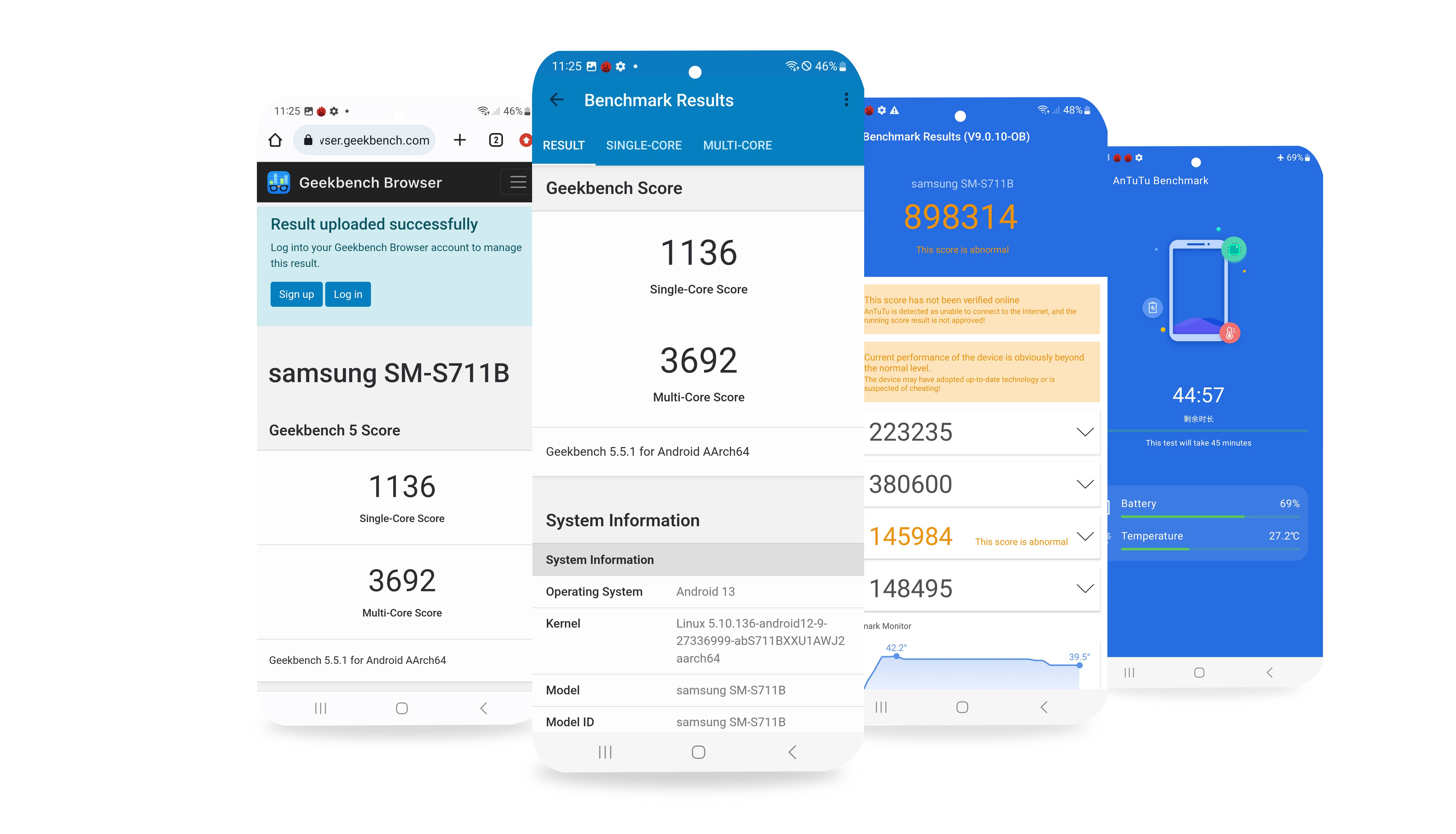 در بخش مشخصات سختافزاری این گوشی به پردازنده اگزینوس 2200 اختصاصی سامسونگ مجهز شده است. قدرت این پردازنده بر کسی پوشیده نیست و باید بگوییم که در اجرای بازیهای سنگین عملکرد روان، بدون لگ و مناسبی را دارد. با توجه به تستهای انجام شده این گوشی نشان داد که در این بخش توانایی ارائه عملکردی در حد و اندازه پرچمداران این شرکت را دارد. اگر کمی تخصصیتر بخواهیم به قضیه نگاه کنیم، باید بدانید که سیستم خنککننده به نسبت نسل قبلی بهبود چشمگیری داشته، اما در تستهای سنگین هنوز هم کنترل دما میتواند بهتر باشد. امیدواریم که در نسلهای بعدی سامسونگ بتواند در کنار ارائه حداکثر عملکرد پردازنده، در کنترل دما هم موفقتر باشد.