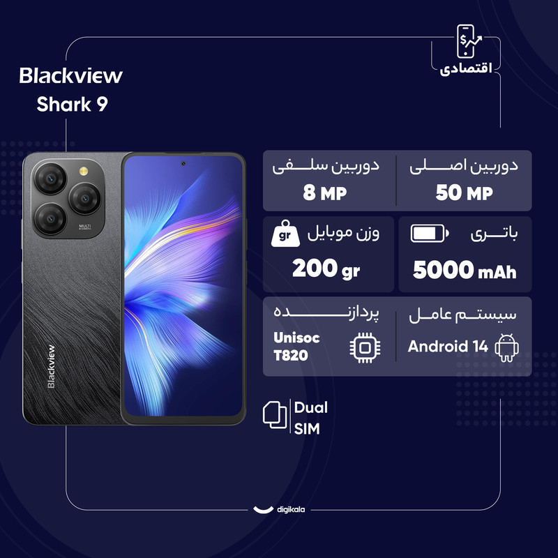 گوشی Blackview Shark 9 جدیدترین گوشی از برند بلک ویو است که برای کاربرانی طراحی شده که به دنبال دستگاهی با قابلیتهای خوب در کنار قیمت مناسب هستند. این گوشی در نوامبر ۲۰۲۴ عرضه شد و با ویژگیهای برجستهاش، در دسته گوشیهای اقتصادی خوش فروش قرار گرفته است. Blackview Shark 9 از یک نمایشگر ۶.۶۷ اینچی IPS LCD با رزولوشن ۷۲۰ در ۱۶۰۴ پیکسل بهره میبرد که تجربه بصری خوبی در شرایط نوری مختلف ارائه میدهد. پردازنده Unisoc T820 همراه با ۸ گیگابایت رم و ۲۵۶ گیگابایت حافظه داخلی، عملکرد قابل قبولی برای استفادههای روزمره و کارهای سبک فراهم میآورد. این گوشی همچنین از سیستمعامل Android 14با رابط کاربری Doke OS 4.0 بهره میبرد که تجربه کاربری ساده و روانی را به ارمغان میآورد. دوربین اصلی گوشی شامل یک سنسور ۵۰ مگاپیکسلی با قابلیت فوکوس خودکار تصاویر با کیفیتی در نور کافی ثبت میکند و دو سنسور ۲ مگاپیکسلی برای ماکرو و عمق است که در شرایط مختلف میتوانند کاربردی باشند. همچنین، باتری ۵۰۰۰ میلیآمپر ساعتی با پشتیبانی از شارژ سریع ۱۸ وات، عمر باتری طولانی را فراهم میآورد. این گوشی همچنین دارای NFC، بلوتوث ۵.۰، پورت USB Type-C و استاندارد IP68 برای مقاومت در برابر آب و گرد و غبار است. با توجه به ویژگیهای مناسب و قیمت مقرونبهصرفه، Blackview Shark 9 انتخابی عالی برای کسانی است که به دنبال گوشی مقاوم با کارایی خوب و هزینه پایین هستند.