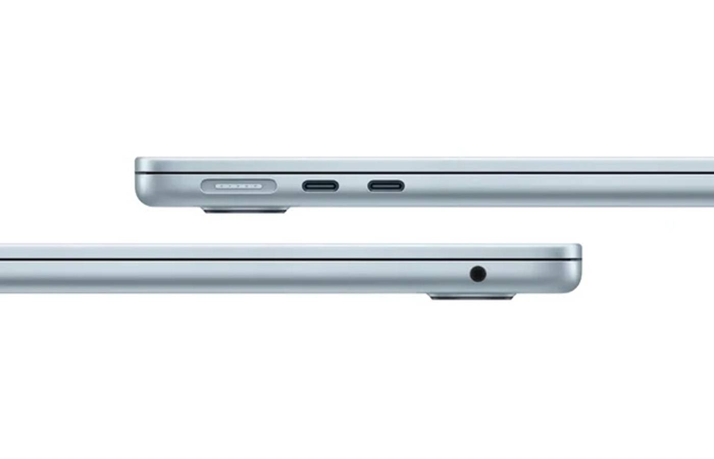 دو پورت USB‑C با استاندارد Thunderbolt 4/USB 4 در سمت چپ، توان انتقال داده تا ۴۰ گیگابیتبرثانیه، پشتیبانی از خروجی تصویر تا وضوح ۶K با نرخ ۶۰ هرتز و قابلیت شارژ سریع را فراهم میکنند. پورت شارژر مغناطیسی MagSafe 3 جدا از مسیر داده، امکان استفاده از دو پورت برای اتصال لوازم جانبی را حفظ میکند. جک ۳.۵ میلیمتری هدفون با تقویتکننده داخلی برای هدستهای پرامپدانس، نشانه توجه اپل به تجربه صوتی حرفهای است. اتصال بیسیم با Wi‑Fi 6E و بلوتوث ۵.۳، انتقال داده سریع و پایدار را تضمین میکند. نمایشگر ۱۳.۶ اینچی Liquid Retina XDR با رزولوشن ۲۵۶۰×۱۶۶۴ و روشنایی ۵۰۰ نیت، پوشش رنگی P3 و تکنولوژی True Tone را ارائه میدهد. این پنل با پشتیبانی از بیش از یک میلیارد رنگ و زمان پاسخدهی سریع، برای کارهای گرافیکی، تدوین ویدئو، و مشاهده محتوای HDR مناسب است. روکش براق جزئیات را برجسته میکند، هرچند در محیطهای با نور شدید ممکن است بازتاب ایجاد کند.
