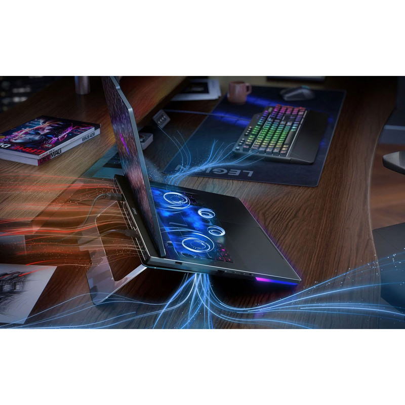 این لپتاپ مجموعهای گسترده از درگاهها را ارائه میدهد. شامل سه پورت USB-A 3.2 Gen 2، یک پورت USB-C 3.2 Gen 2، دو پورت Thunderbolt 5/USB4 با سرعت ۸۰ گیگابیت بر ثانیه، خروجی تصویر HDMI 2.1 و DisplayPort 2.1، شیار کارت حافظه، جک ۳.۵ میلیمتری صدا و پورت LAN 2.5G. از نظر ارتباطات بیسیم نیز، مجهز به Wi-Fi 7 (Intel Killer) و Bluetooth 5.4 است. این ترکیب نهتنها برای گیمرها، بلکه برای استریمرها و تولیدکنندگان محتوا که به چندین نمایشگر یا تجهیزات جانبی نیاز دارند، یک مجموعه کامل محسوب میشود. با توجه به سختافزار فوقالعاده قدرتمند، مدیریت دما اهمیت ویژهای دارد. Legion 9 از طراحی پیشرفته با چندین لوله حرارتی و فنهای قدرتمند بهره میبرد تا حتی در زمان اجرای طولانیترین بازیها یا رندرهای سنگین، دما در محدودهای امن باقی بماند. وجود چیپ هوش مصنوعی LA3-P به بهینهسازی هوشمند سیستم خنککننده کمک میکند و عملکرد دستگاه را پایدار نگه میدارد.