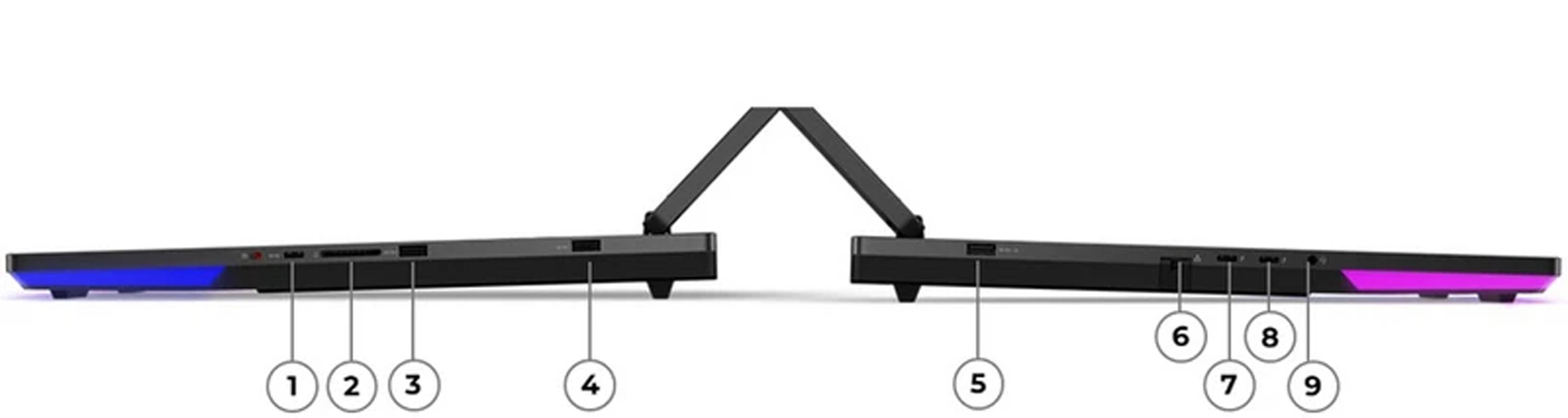| امکانات دیگر | بدنه از آلومینیوم و کربن فورج شده در قسمت رویی / کیبورد با نور پس زمینه قابل شخصی سازی به ازای هر دکمه (Per-Key RGB) / چیپ هوش مصنوعی LA۳-P |