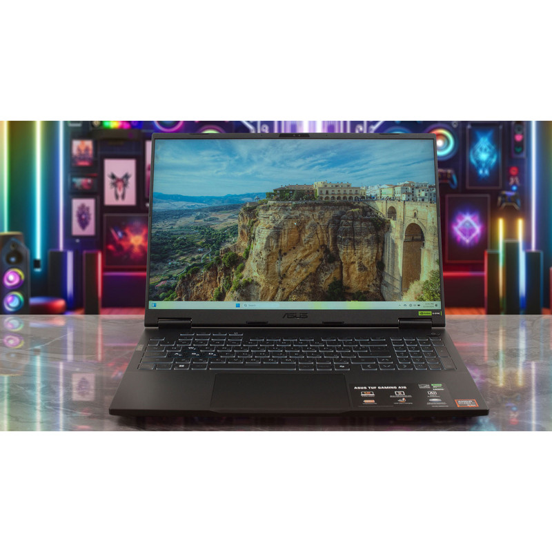 ایسوس در طراحی A16 به سراغ تعادلی میان استحکام و زیبایی رفته است. شاسی با الگوهای صنعتی و خطوط زاویهدار، حس قدرت و مقاومت را القا میکند و در عین حال ظرافت کافی برای استفاده روزمره خارج از خانه هم دارد. وزن ۲.۲ کیلوگرمی و ابعاد ۳۵۴ در ۲۶۹ در ۲۵.۷ میلیمتر نشان میدهد که این لپتاپ جزو مدلهای فوق سبک نیست، اما با توجه به سختافزار و سیستم خنککنندگی قدرتمندش، همچنان حمل نسبتاً راحتی دارد. بدنه با استانداردهای نظامی TUF ساخته شده و در برابر فشارهای فیزیکی، تغییرات دما و رطوبت مقاومت بیشتری نسبت به مدلهای معمولی ارائه میکند. نمایشگر ۱۶ اینچی با پنل IPS level و وضوح ۲۵۶۰ در ۱۶۰۰ پیکسل، تصویری دقیق و واضح ارائه میدهد. نرخ بروزرسانی ۱۶۵ هرتز، حرکات سریع در بازیها را روان و بدون برش تصویر نمایش میدهد. روکش مات صفحه، بازتاب نور محیط را کاهش میدهد و حتی در شرایط روشنایی بالا، دید مناسبی فراهم میکند. نسبت تصویر ۱۶:۱۰ فضای عمودی بیشتری برای نمایش محتوا مهیا میکند که هم در بازی و هم در کارهای اداری کاربرد دارد. پشتیبانی از فناوریهای G-Sync، MUX Switch و NVIDIA Advanced Optimus باعث افزایش هماهنگی بین GPU و نمایشگر شده و تاخیر ورودی را کاهش میدهد. پوشش ۱۰۰ درصدی فضای رنگی sRGB هم دقت رنگ را در سطح کارهای گرافیکی نیمهحرفهای تضمین میکند.