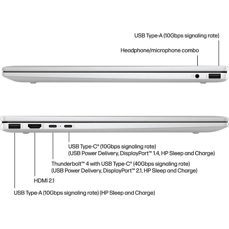 این لپتاپ اچپی از درگاههای متنوعی بهرهمند است. دو پورت USB-A 3.2 در این دستگاه، سرعت بالایی دارند و دو درگاه USB-C هم با پشتیبانی از شارژ، DisplayPort 1.4 و HP Sleep and Charge، بخش زیادی از نیازهای ارتباطی شما را برطرف میکنند. خروجی ویدیو HDMI و جک ۳.۵ میلیمتری صدا هم سایر پورتهای این دستگاه به شمار میآیند. Wi-Fi 6E و بلوتوث 5.3 هم به نیازهای اینترنتی و ارتباطی شما پاسخ میدهند.
