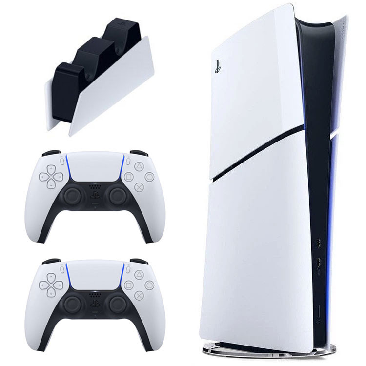 کنسول بازی سونی مدل PlayStation 5 Slim Digital Edition ظرفیت 1 ترابایت ریجن 2016B اروپا به همراه دسته اضافی و پایه شارژر